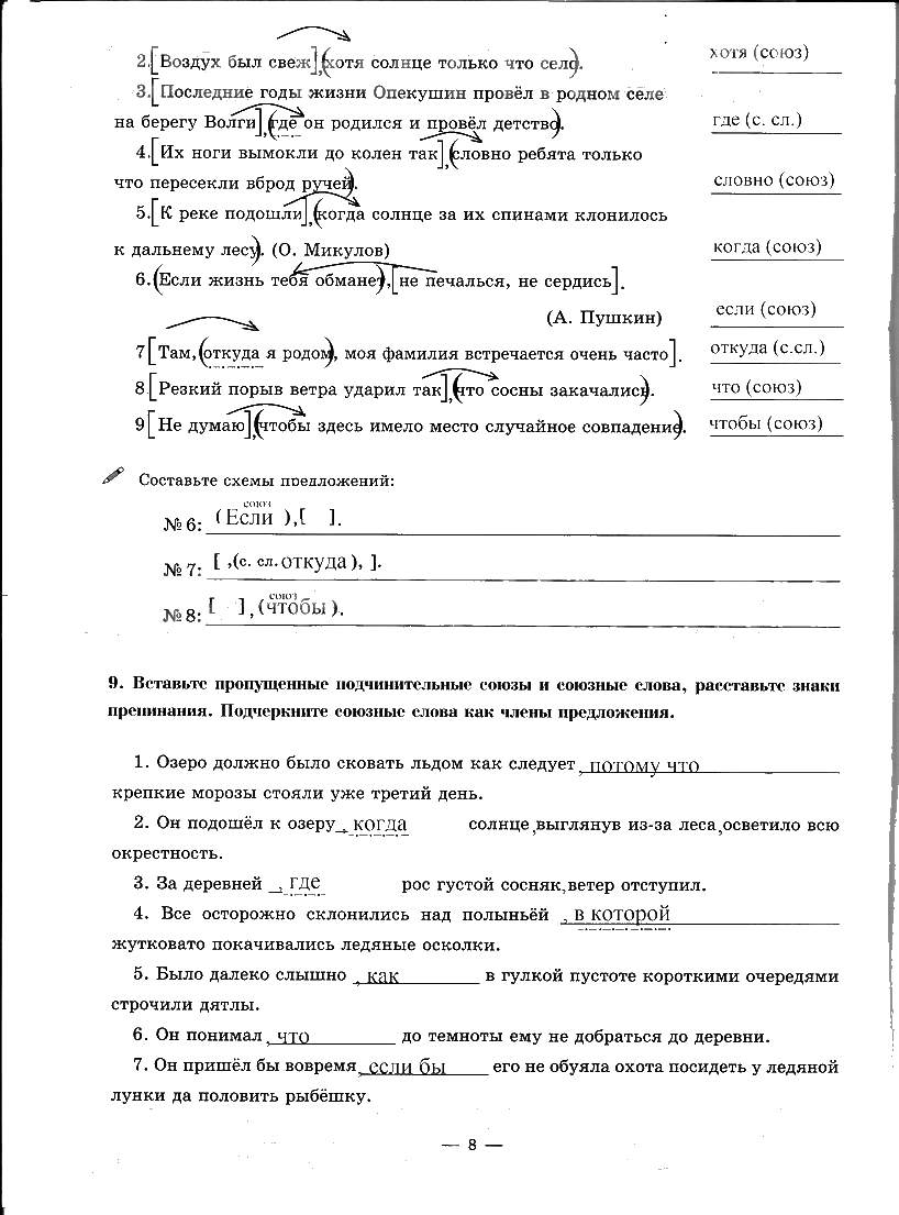 Решения домашних заданий по русскому языку 9 класс Богданова 8 упражнение Рабочая тетрадь