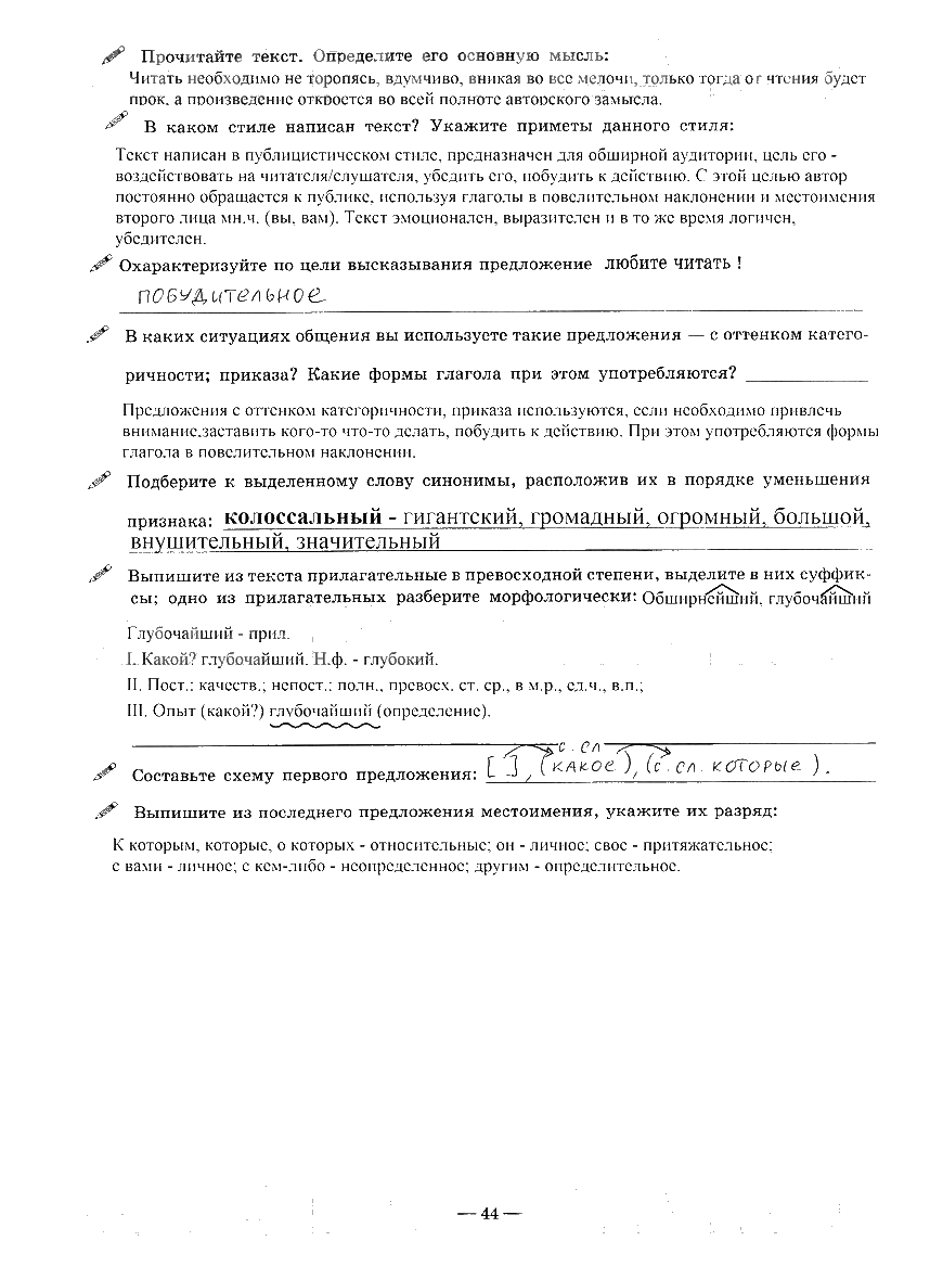 Решения домашних заданий по русскому языку 9 класс Богданова 44 упражнение Рабочая тетрадь