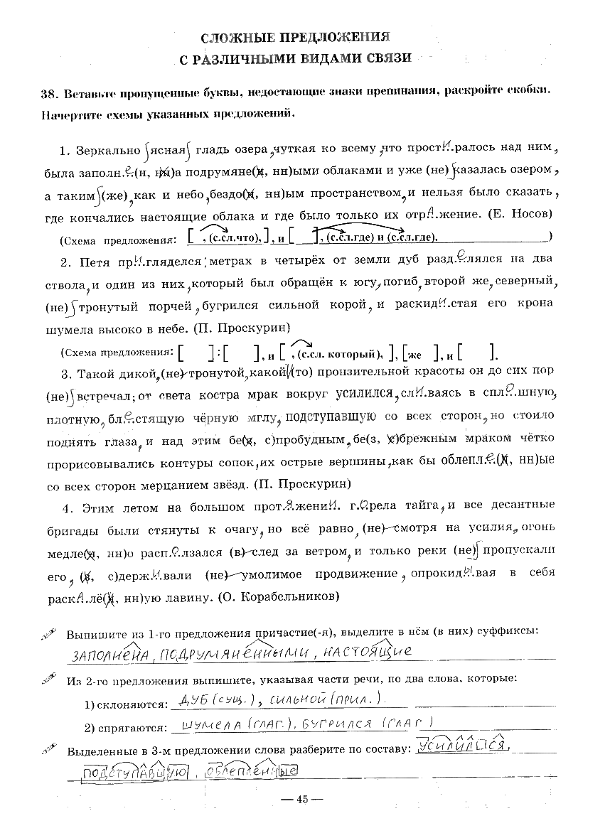 Решения домашних заданий по русскому языку 9 класс Богданова 45 упражнение Рабочая тетрадь