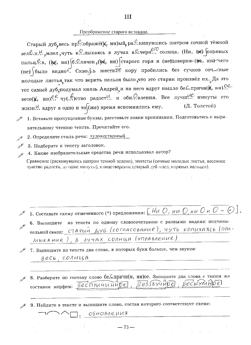 Решения домашних заданий по русскому языку 9 класс Богданова 75 упражнение Рабочая тетрадь