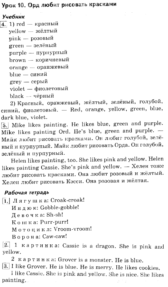 Решения домашних заданий по английскому языку 2 класс Кузовлев 10 упражнение