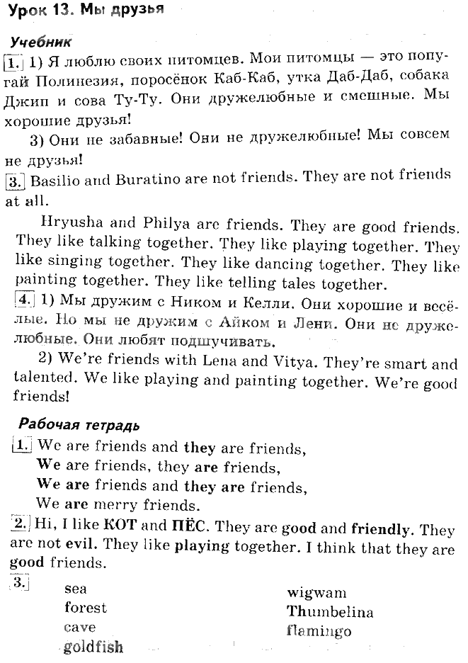 Решения домашних заданий по английскому языку 2 класс Кузовлев 13 упражнение