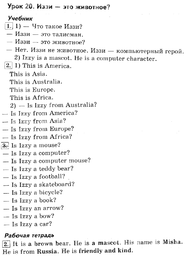 Решения домашних заданий по английскому языку 2 класс Кузовлев 20 упражнение