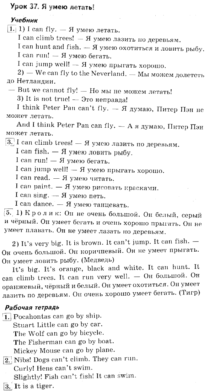 Решения домашних заданий по английскому языку 2 класс Кузовлев 37 упражнение