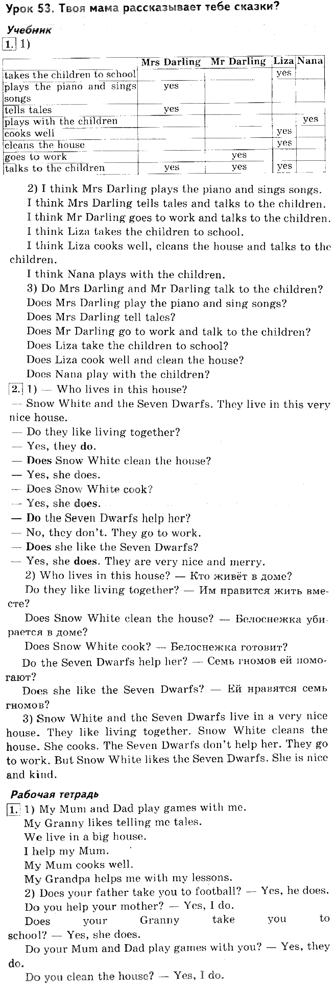 Решения домашних заданий по английскому языку 2 класс Кузовлев 53 упражнение