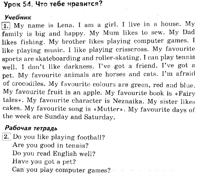 Решения домашних заданий по английскому языку 2 класс Кузовлев 54 упражнение