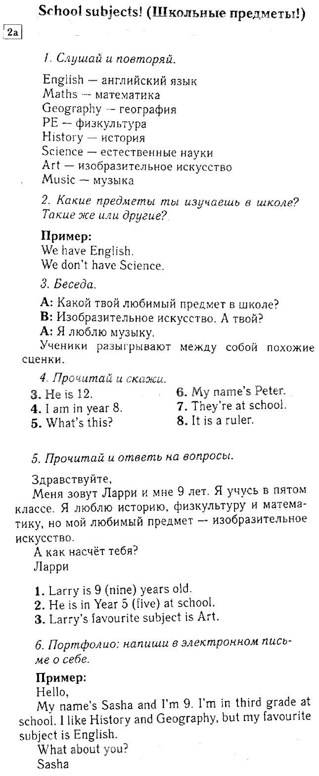 Решения домашних заданий по английскому языку 3 класс Быкова 2a упражнение