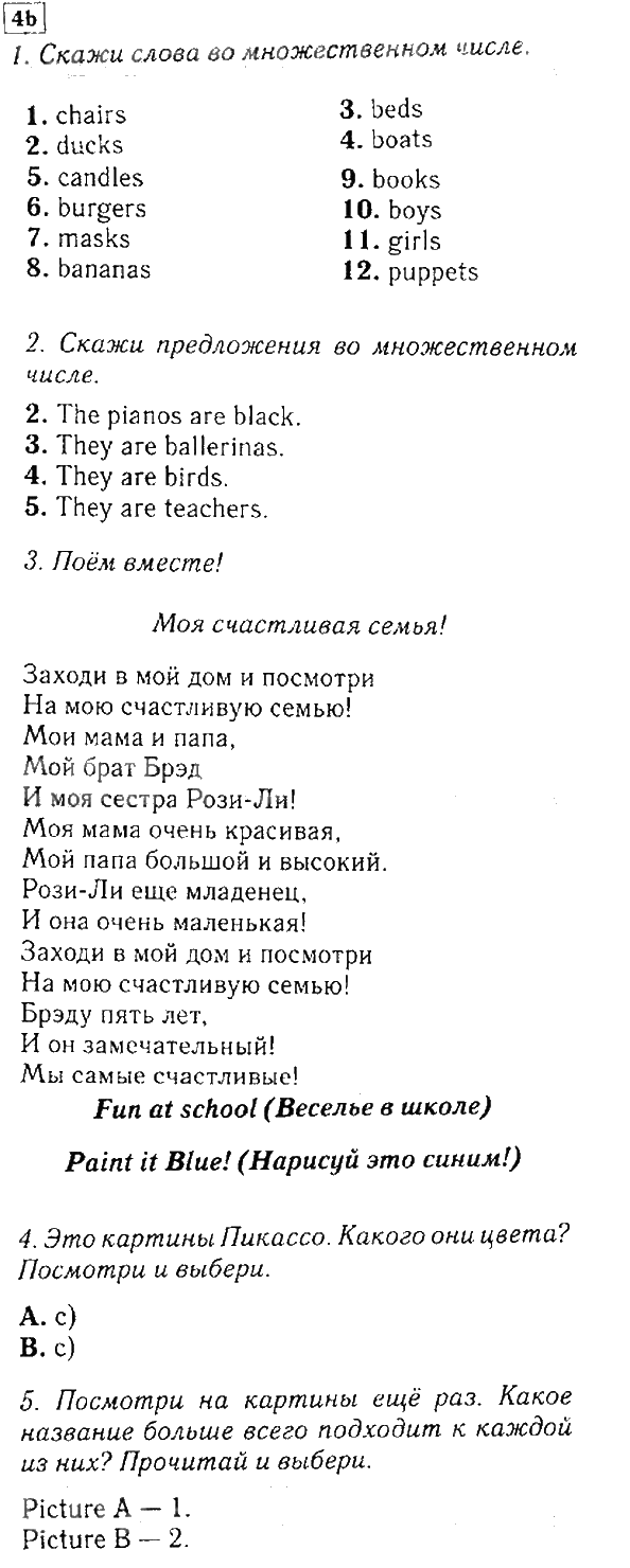 Решения домашних заданий по английскому языку 3 класс Быкова 4b упражнение