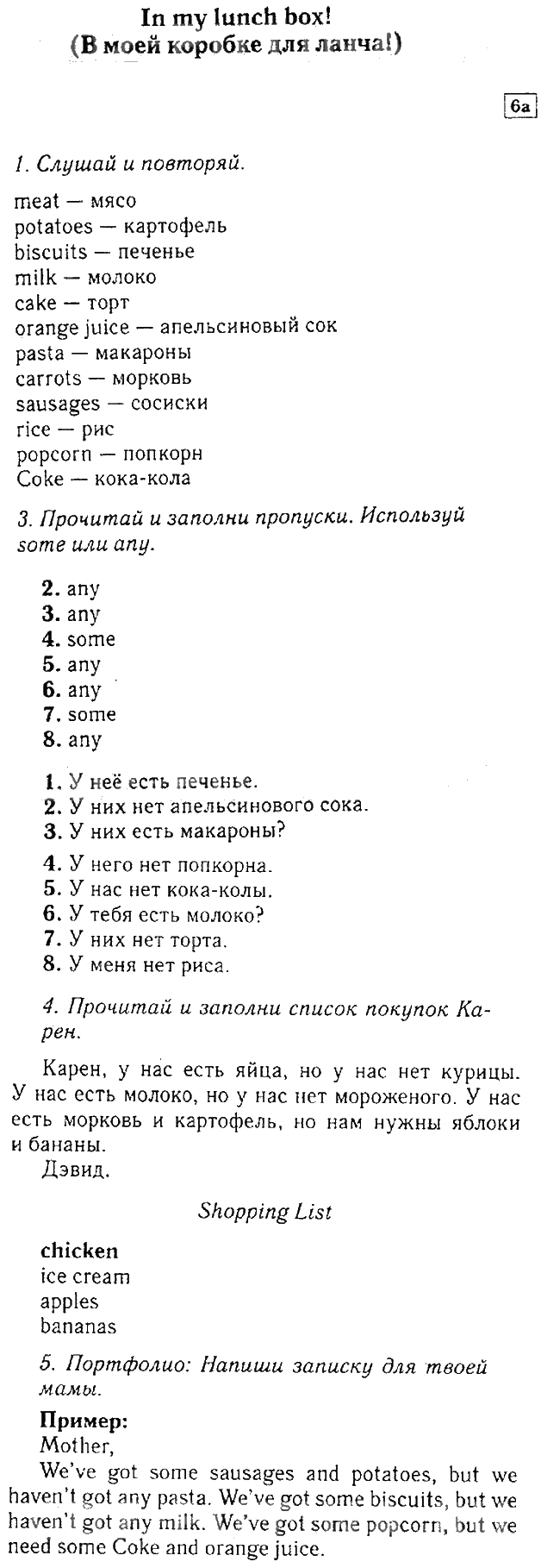 Решения домашних заданий по английскому языку 3 класс Быкова 6a упражнение