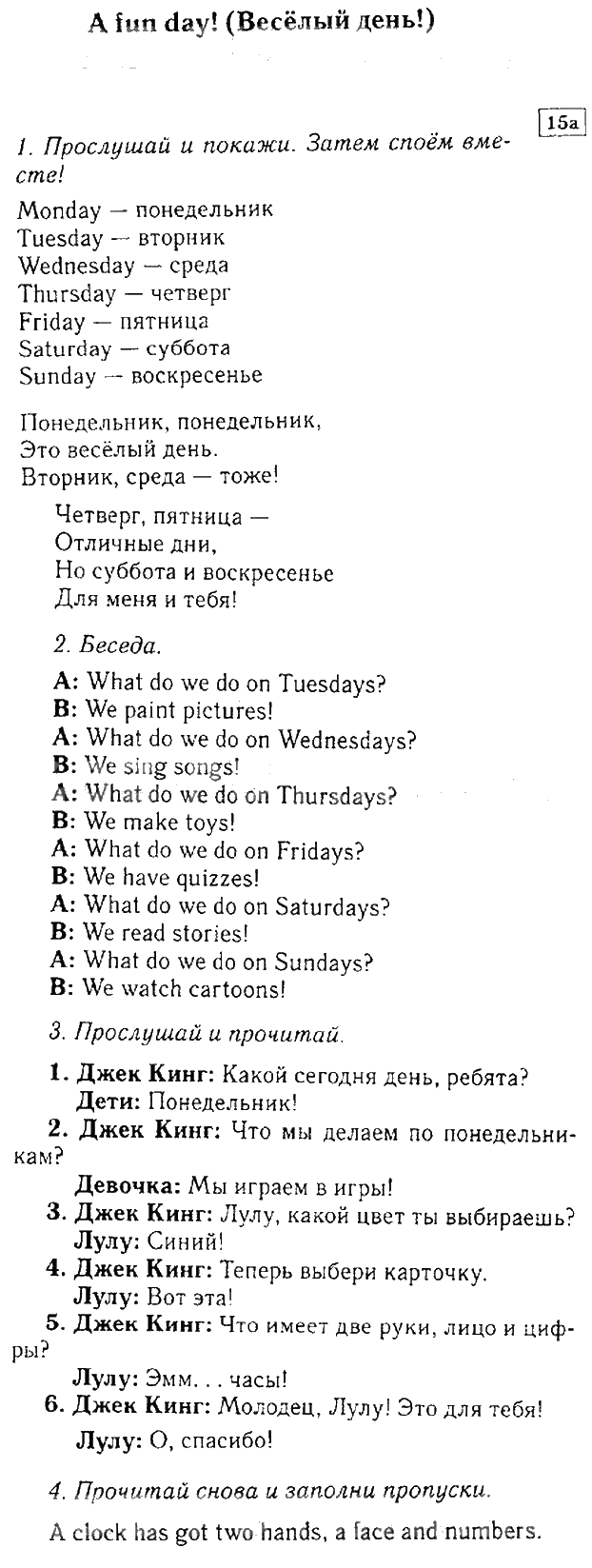 Решения домашних заданий по английскому языку 3 класс Быкова 15a упражнение