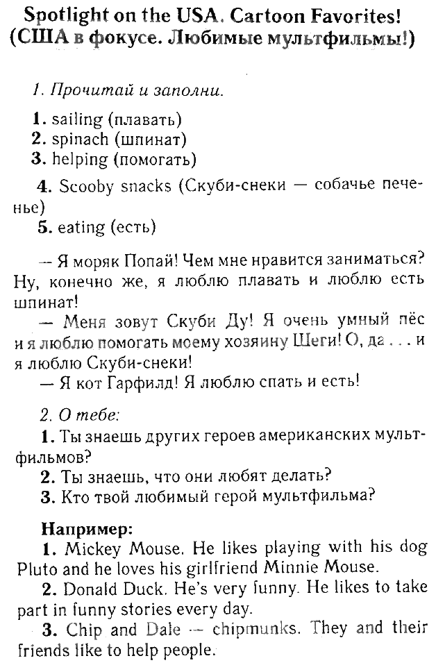 Решения домашних заданий по английскому языку 3 класс Быкова Spotlight on the USA. Cartoon Favorites! упражнение