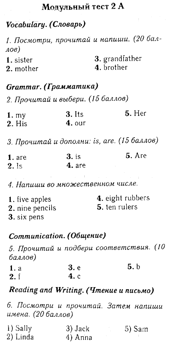 Решения домашних заданий по английскому языку 3 класс Быкова Модульный тест 2A упражнение
