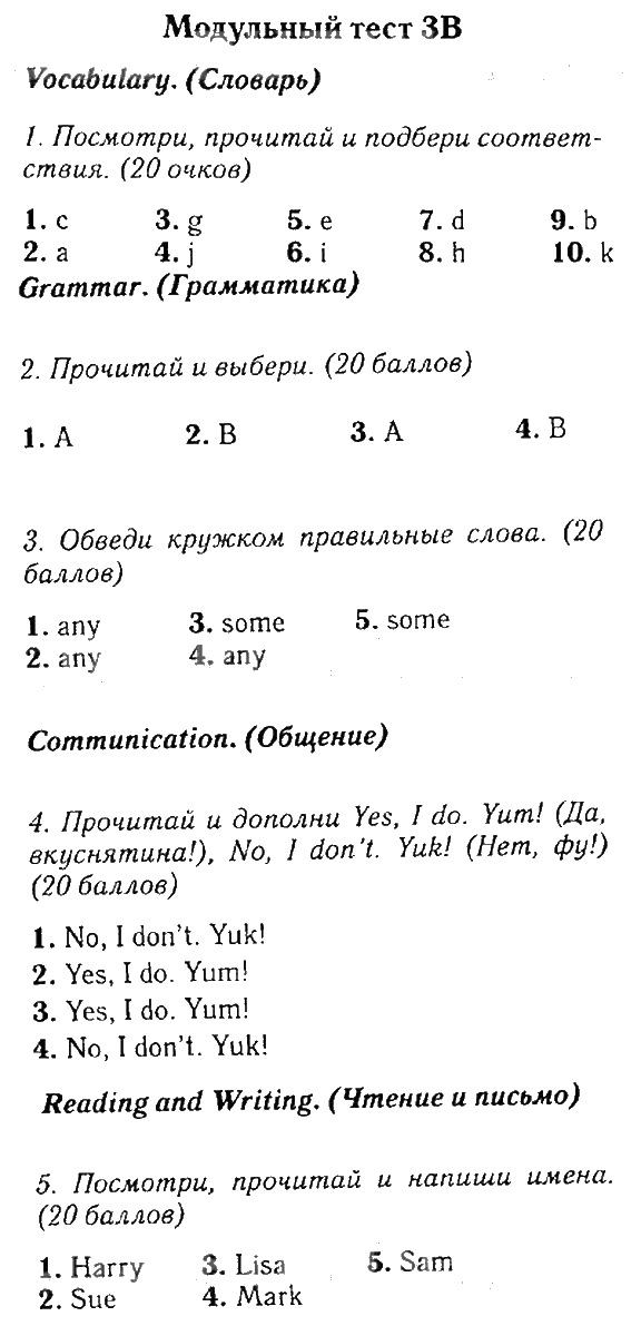 Решения домашних заданий по английскому языку 3 класс Быкова Модульный тест 3B упражнение