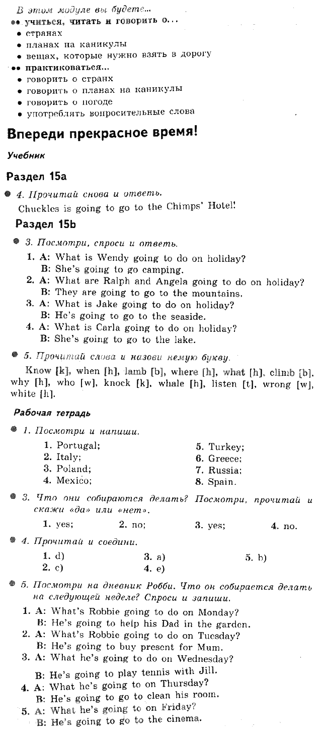 Решения домашних заданий по английскому языку 4 класс Быкова 8.1 Впереди прекрасное время! упражнение
