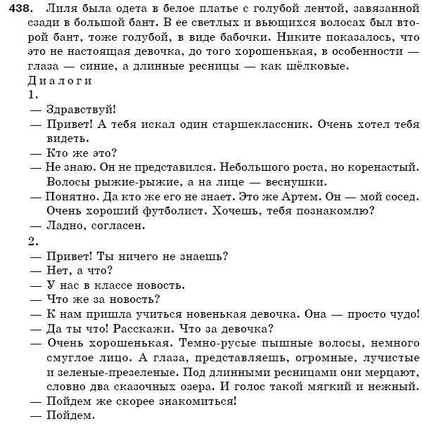 Решения домашних заданий по русскому языку 5 класс Баландина Н., Дегтярёва К., Лебеденко С. 438 упражнение