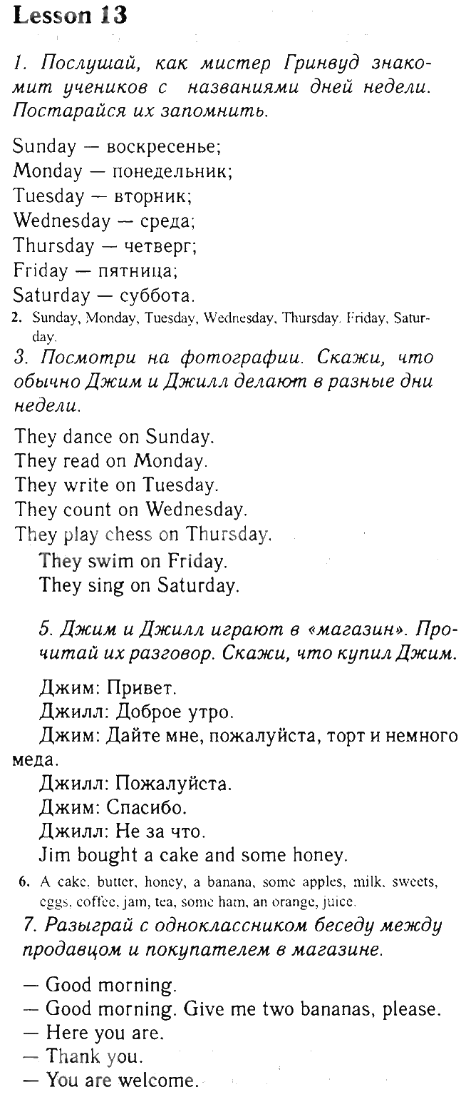 Решения домашних заданий по английскому языку 3 класс Биболетова 13 упражнение