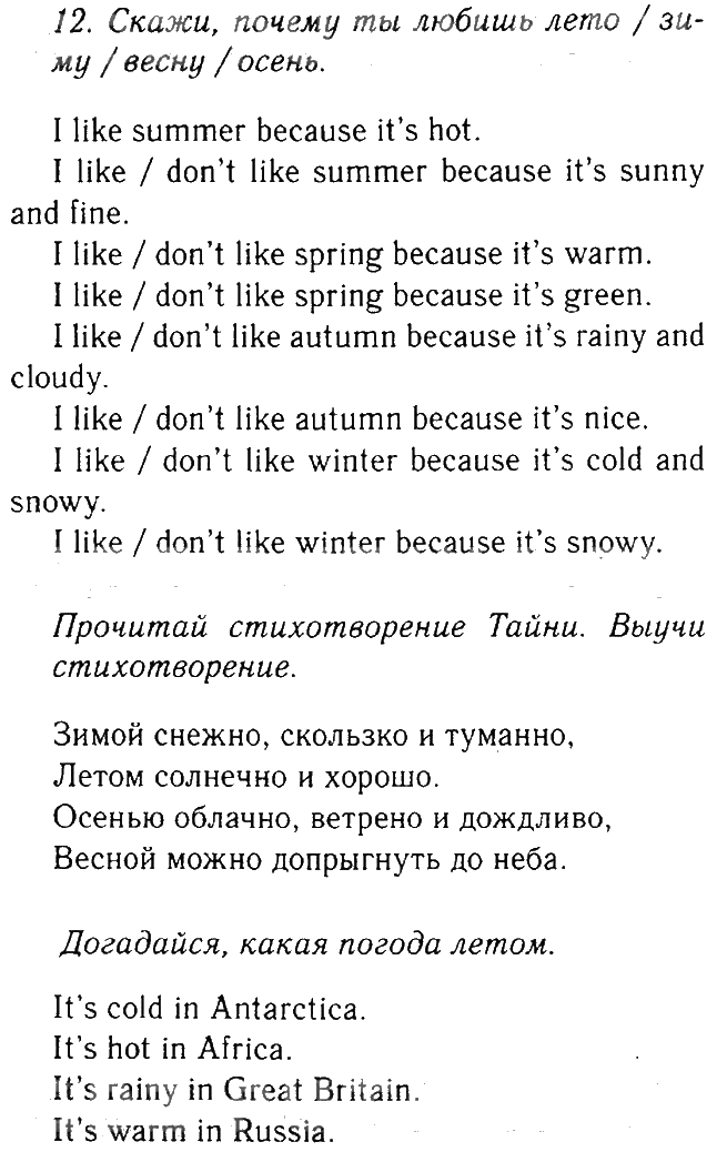 Решения домашних заданий по английскому языку 4 класс Биболетова 12 упражнение