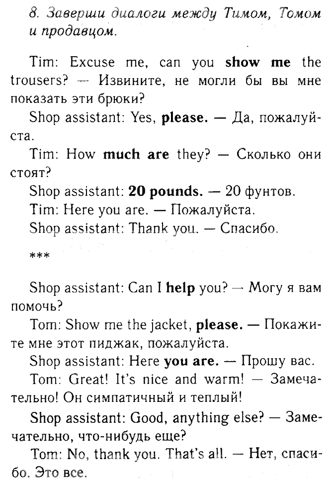 Решения домашних заданий по английскому языку 4 класс Биболетова 8 упражнение