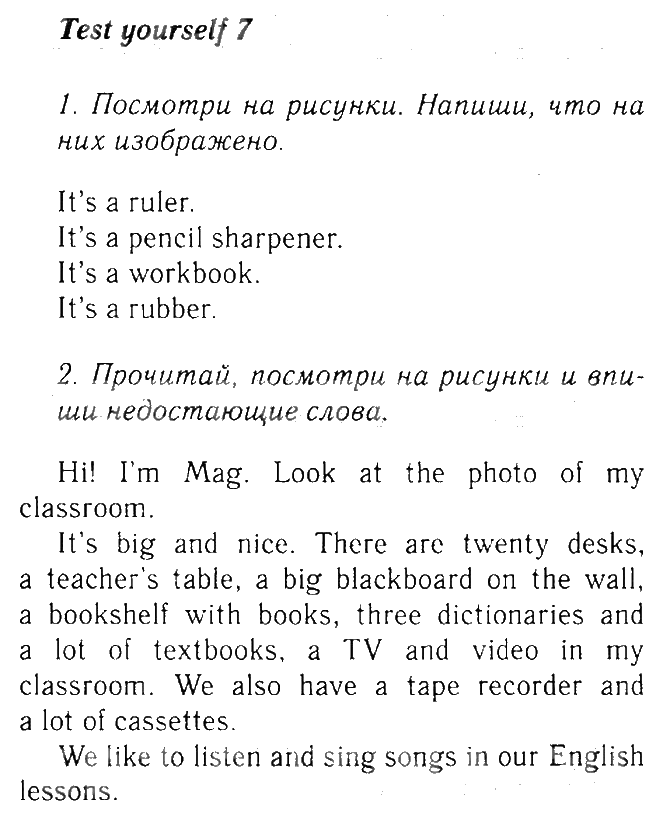 Решения домашних заданий по английскому языку 4 класс Биболетова Test yourself 7 упражнение