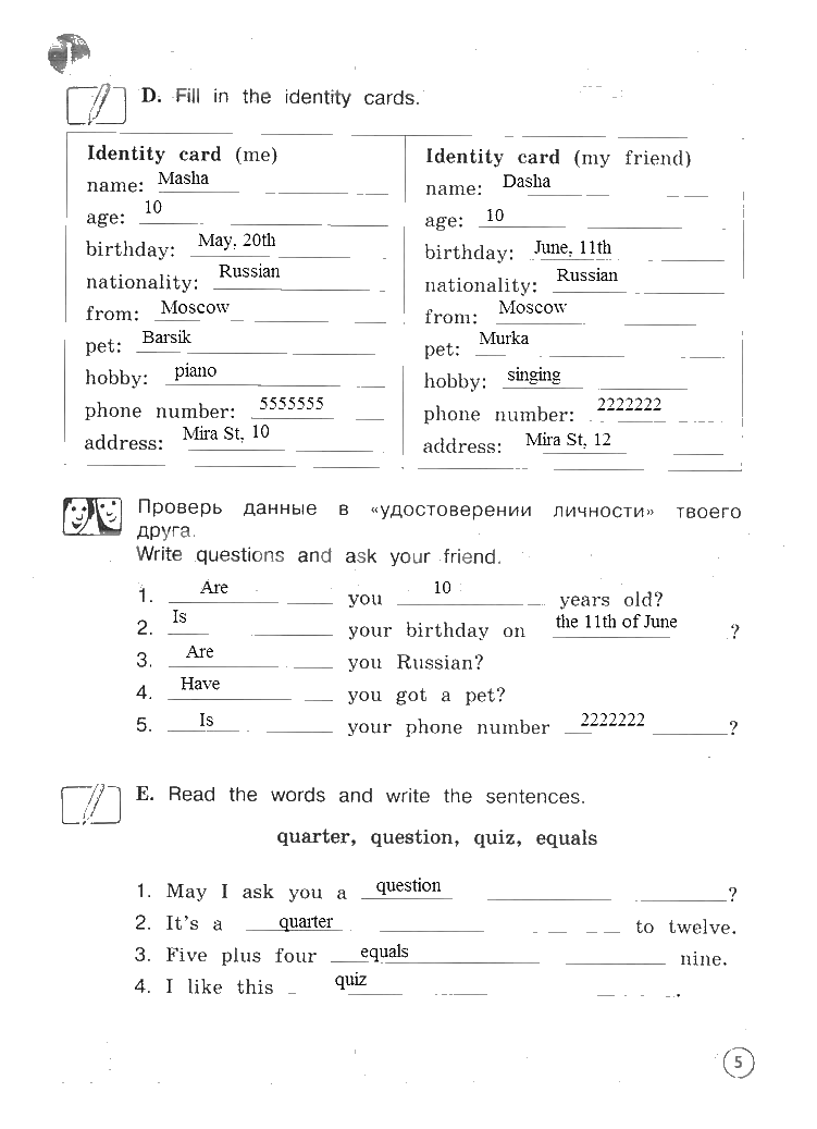 Решения домашних заданий по английскому языку 4 класс Вербицкая 5 упражнение