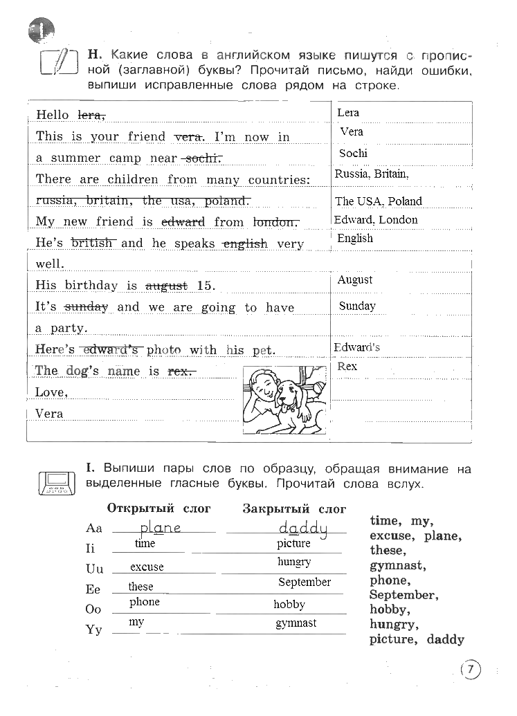 Решения домашних заданий по английскому языку 4 класс Вербицкая 7 упражнение