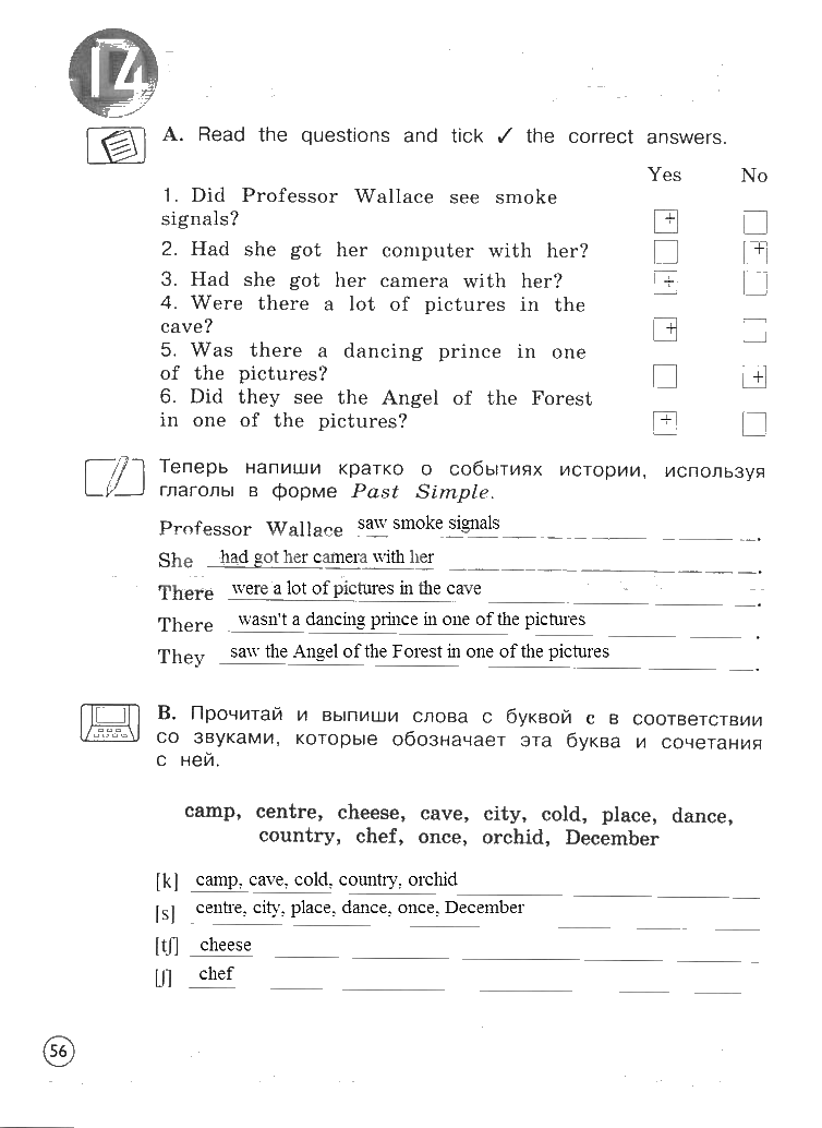 Решения домашних заданий по английскому языку 4 класс Вербицкая 56 упражнение