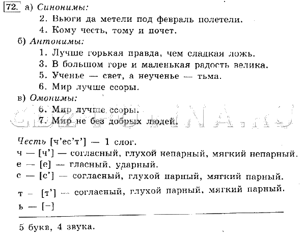 Решения домашних заданий по русскому языку 4 класс Канакина, Горецкий 72 упражнение