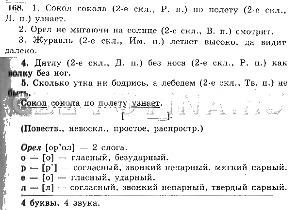 Решения домашних заданий по русскому языку 4 класс Канакина, Горецкий 168 упражнение