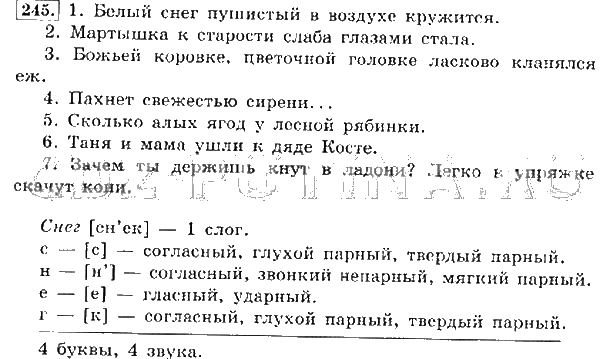 Решения домашних заданий по русскому языку 4 класс Канакина, Горецкий 245 упражнение