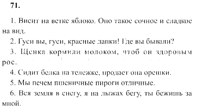Решения домашних заданий по русскому языку 4 класс Канакина, Горецкий 71 упражнение