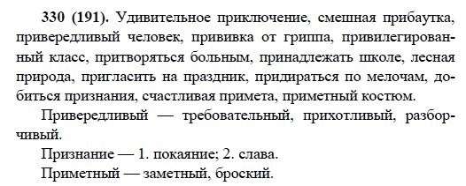 Решения домашних заданий по русскому языку 6 класс Разумовская М.М., Львова С.И., Капинос В.И. 330(191) упражнение