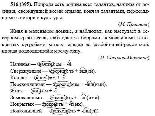 Решения домашних заданий по русскому языку 6 класс Разумовская М.М., Львова С.И., Капинос В.И. 516(395) упражнение