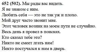 Решения домашних заданий по русскому языку 6 класс Разумовская М.М., Львова С.И., Капинос В.И. 652(502) упражнение