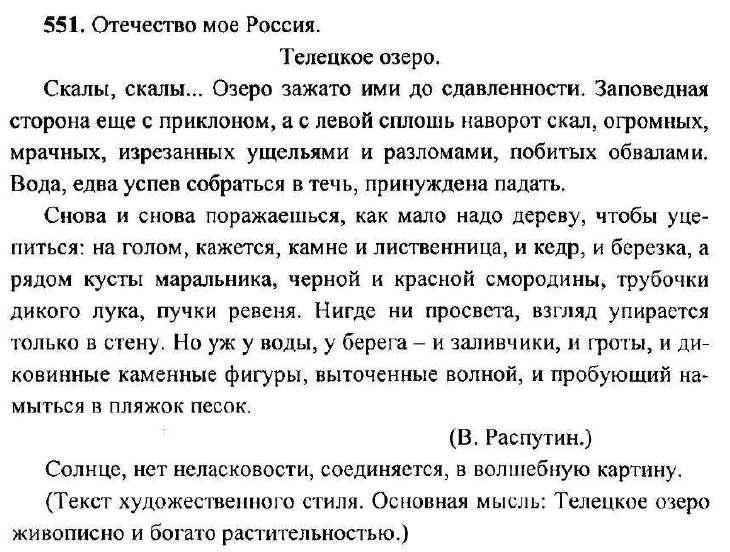 Решения домашних заданий по русскому языку 6 класс Ладыженская Т.А., Баранов М.Т., Тростенцова Л.А. 551 упражнение