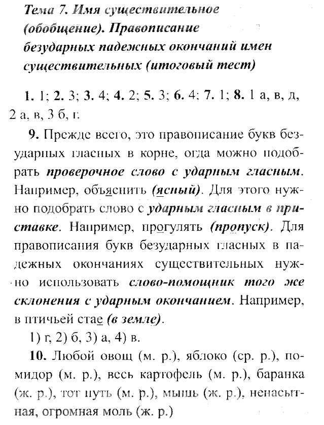 Решения домашних заданий по русскому языку 4 класс Бунеев, Бунеева, Пронина Тема 7. Имя существительное (обобщение). Правописание безударных упражнение