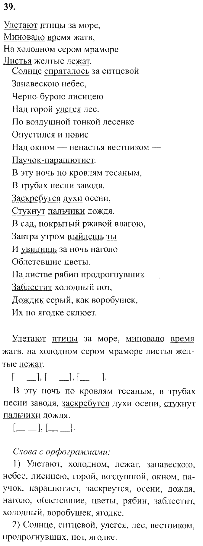 Решения домашних заданий по русскому языку 4 класс Бунеев, Бунеева, Пронина 39 упражнение