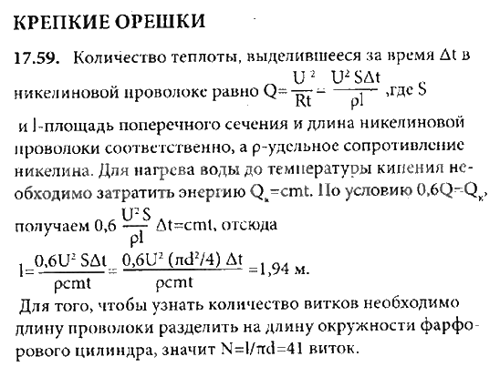 Решения домашних заданий по физике 8 класс Генденштейн 17.59 упражнение