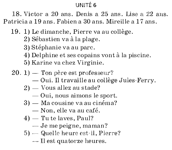 Решения домашних заданий по французскому языку 7 класс Шацких, Кузнецова Unité 6 упражнение