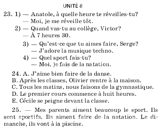 Решения домашних заданий по французскому языку 7 класс Шацких, Кузнецова Unité 8 упражнение