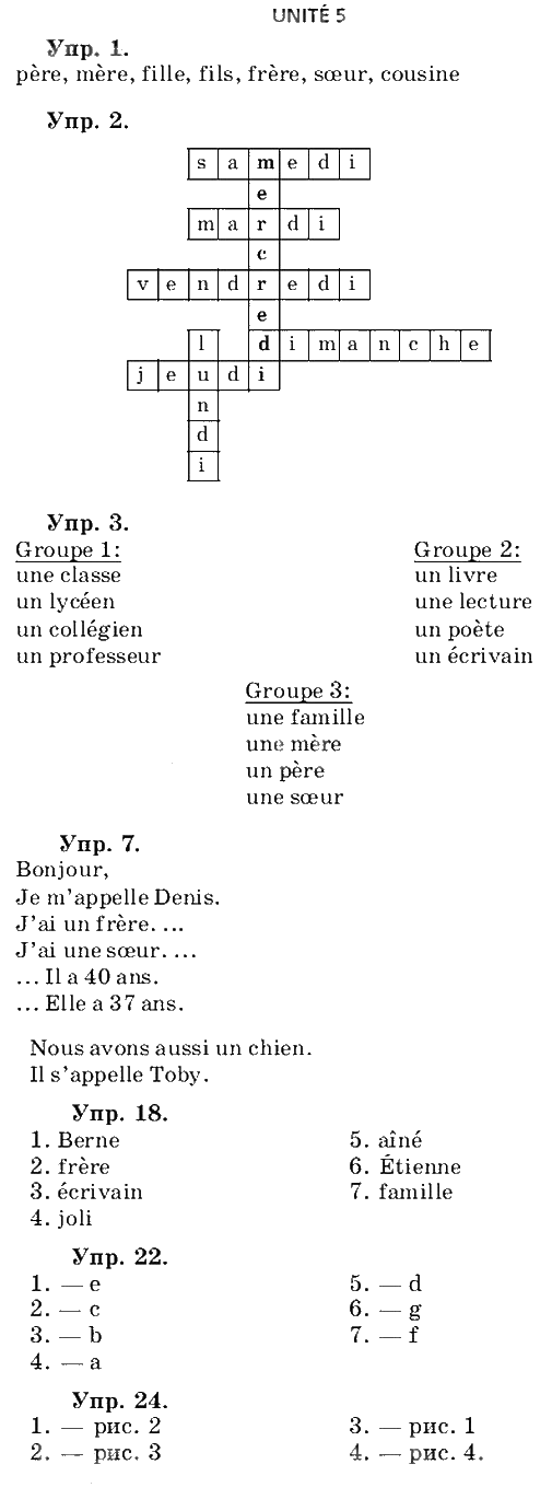 Решения домашних заданий по французскому языку 7 класс Шацких, Кузнецова Unité 5 упражнение