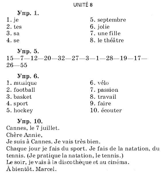 Решения домашних заданий по французскому языку 7 класс Шацких, Кузнецова Unité 8 упражнение