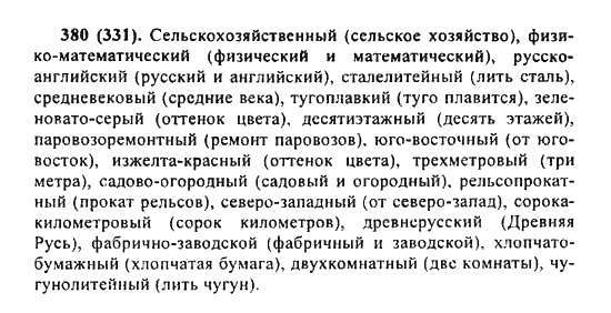 Решения домашних заданий по русскому языку 6 класс Баранов М.Т., Ладыженская Т.А., Тростенцова Л.А. 380(331) упражнение