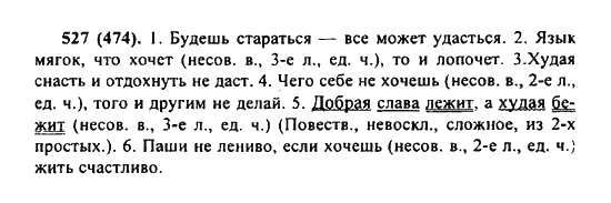 Решения домашних заданий по русскому языку 6 класс Баранов М.Т., Ладыженская Т.А., Тростенцова Л.А. 527(474) упражнение