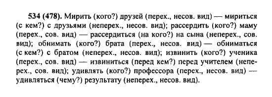 Решения домашних заданий по русскому языку 6 класс Баранов М.Т., Ладыженская Т.А., Тростенцова Л.А. 534(478) упражнение