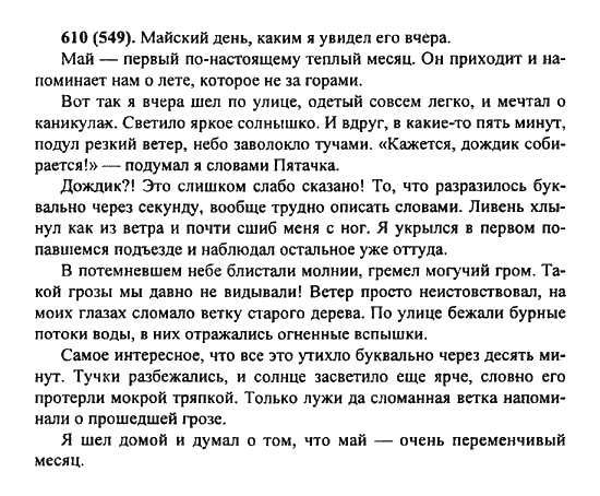 Решения домашних заданий по русскому языку 6 класс Баранов М.Т., Ладыженская Т.А., Тростенцова Л.А. 610(549) упражнение