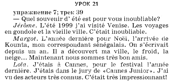 Решения домашних заданий по французскому языку 9 класс Шацких Урок 21 упражнение