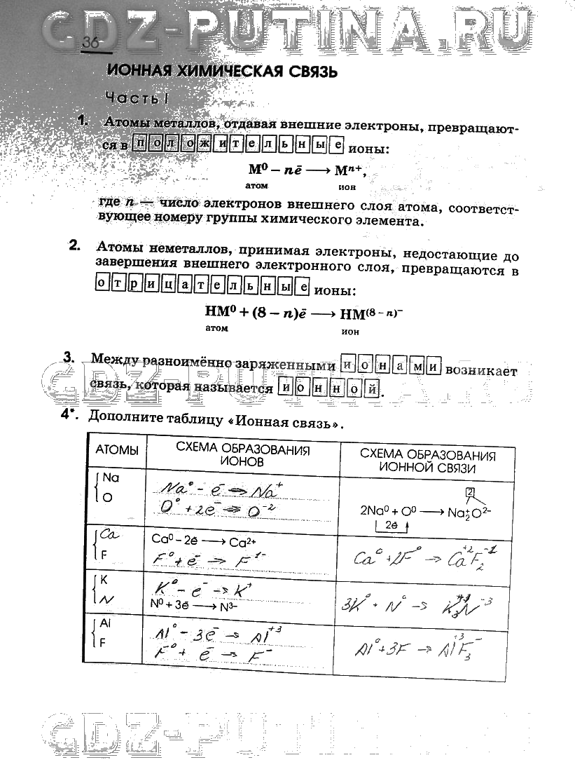 Решения домашних заданий по химии 8 класс Габриелян 36 упражнение Рабочая тетрадь