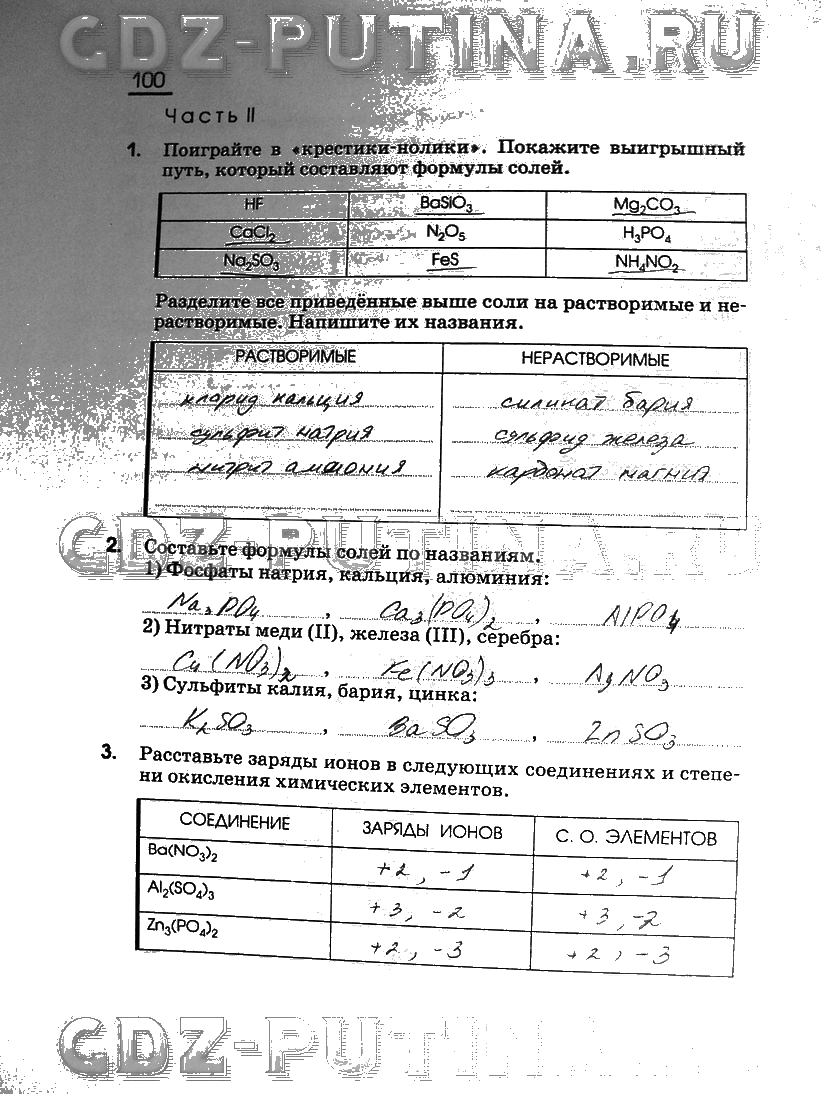 Решения домашних заданий по химии 8 класс Габриелян 100 упражнение Рабочая тетрадь