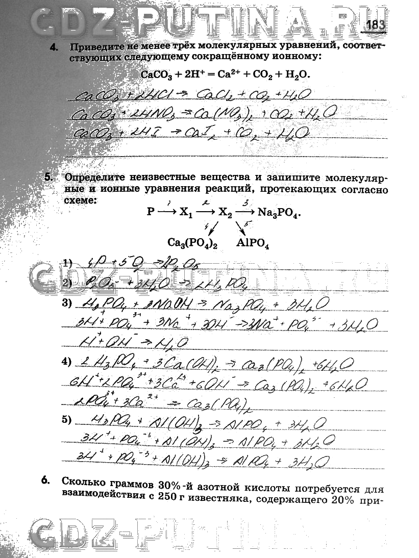 Решения домашних заданий по химии 8 класс Габриелян 183 упражнение Рабочая тетрадь