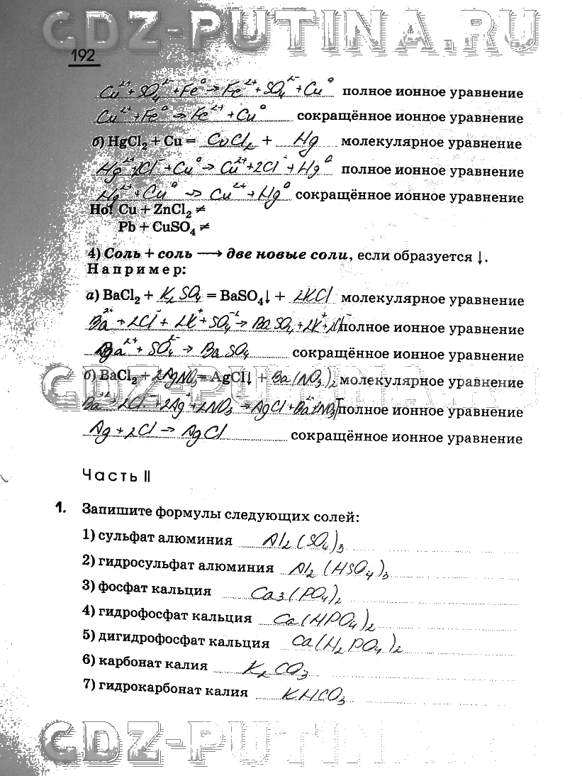 Решения домашних заданий по химии 8 класс Габриелян 192 упражнение Рабочая тетрадь